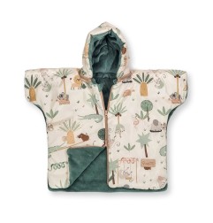 Ponczo samochodowe to innowacyjne i praktyczne rozwiązanie dla najmłodszych pasażerów, które łączy wygodę, bezpieczeństwo i nowoczesny design. Zewnętrzna warstwa poncza wykonana jest z wodoodpornej tkaniny, która skutecznie chroni przed deszczem i wiatrem, zapewniając dziecku komfort podczas każdej podróży, niezależnie od warunków pogodowych. Wewnątrz poncza znajduje się silikonowane wypełnienie, które gwarantuje doskonałą izolację termiczną, a wewnętrzna strona z weluru bawełnianego delikatnie otula skórę dziecka, zapewniając maksymalny komfort.