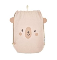 A sack-backpack is a product necessary when completing a layette for kindergarten. Perfect as a bag for slippers, clothes or during walks and trips. The outside of the bag is made of Oeok-tex certified cotton fabric (100% cotton) with a teddy bear print. The inside of the bag is made of a waterproof fabric (100% polyester), so it is easy to clean. Inside the bag there is a small pocket and a label on which we can write the name of the child. The strings allow you to carry the bag as a backpack, in addition, we can tie them anywhere, thus adjusting their length. The bag-backpack has a sewn-on cotton hook that allows it to be hung.