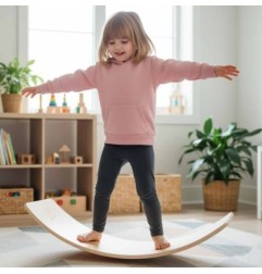 Zabawa na desce do balansowania nigdy się nie nudzi. To atut deski balansującej - może być torem dla aut, tunelem, mostem, a nawet stołkiem. Kiedy energia opadnie, deska daje dzieciom możliwość relaksu jako wygodny bujak. Zabawa z wykorzystaniem deski do balansowania to idealny sposób na rozwój dziecka poprzez radość i eksplorację. Niezależnie od tego, jaki jest wiek dziecka, deska wspiera rozwój kreatywności i samodzielności.
