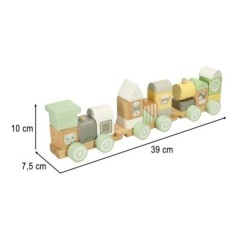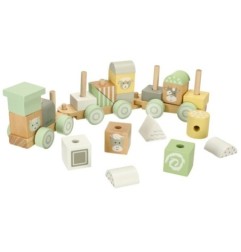 Ta kolejka zabierze Twoje dziecko w podróż pełną zabawy! Trzy wagony pełne drewniany klocków gwarantują godziny kreatywnej zabawy. Maluch może budować różne ciuchcie, które za każdym razem będą miały niepowtarzalny wygląd. Ale klocki doskonale sprawdzą się również jako samodzielna zabawka.