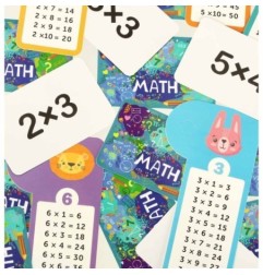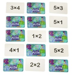 Karty z zadaniami – gracze losują karty z przykładami mnożenia i ścigają się o jak najszybsze podanie poprawnego wyniku.