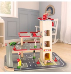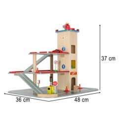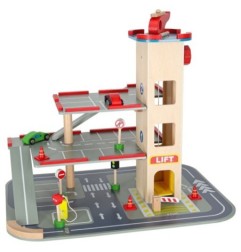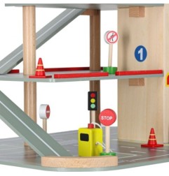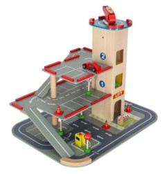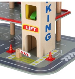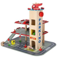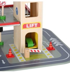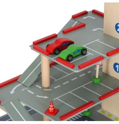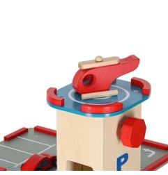 Przepiękny drewniany garaż miejski ma aż cztery poziomy! Pierwsze trzy przeznaczone są dla aut - znajdzie się tam miejsce dla drewnianych samochodzików dołączonych do zestawu, a także wielu innych pojazdów Twojego dziecka. Na kolejne piętra dostaną się one przy pomocy windy!