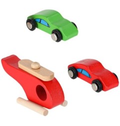 W komplecie z ogromnym parkingiem znajdziesz również dwa autka z ruchomymi kółkami i helikopter z ruchomym śmigłem.