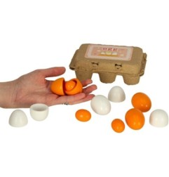 To bezpieczna zabawka wykonana z drewna dla dzieci powyżej 3+. Wytłaczanka jajek porządkuje przestrzeń zabawy, a estetyczne pudełko podkreśla wyjątkowy charakter zestawu. Produkt zapakowany w kartonowe opakowanie łączy funkcjonalność z estetyką - całość wygląda spójnie i nowocześnie.