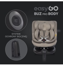 Fotelik samochodowy EASYGO BUZ PRO BODY dla dzieci od 40 do 150 cm I-SIZE – element zestawu 2 w 1 z fotelikiem BUZ PRO z wykorzystaniem wspólnej bazy obrotowej ISOFIX