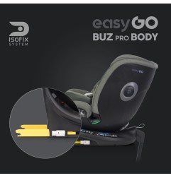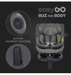 Fotelik samochodowy EASYGO BUZ PRO BODY stanowi połączenie bezpieczeństwa, komfortu i nieprzeciętnego stylu. Jest on kolejnym produktem z najnowszej rodziny fotelików samochodowych z homologacją ECE R129 I-SIZE nowej odmienionej marki EASYGO, która w 2024 roku przeszła wizualną metamorfozę.