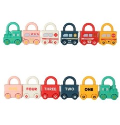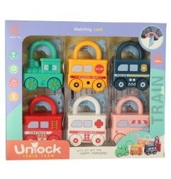 Aż sześć uroczych samochodziko-kłódek: lokomotywa, autobus szkolny, radiowóz, straż pożarna, karetka i lodziarnia, które zapewniają wiele możliwości zabawy!