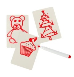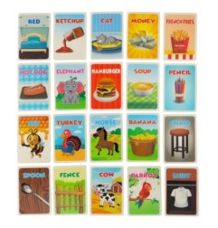 Zestaw zawiera 42 karty, które mają różnorodne obrazki i podpisy po angielsku. Dodatkowe 8 pustych kart umożliwia samodzielne narysowanie kart do odgadnięcia.