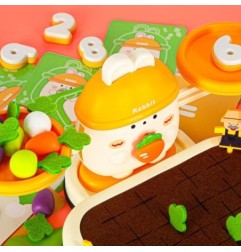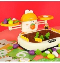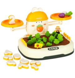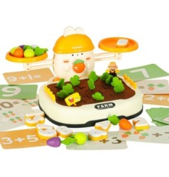 Na górze zestawu króluje uroczy królik, który "pilnuje" równowagi. Dziecko może układać marchewki lub inne elementy, starając się zachować równowagę albo świadomie ją zakłócać, ucząc się przy tym podstaw fizyki i logicznego myślenia. Do zestawu dołączone są również specjalne cyferki - każda z nich ma odpowiednio dobraną wagę, odpowiadającą reprezentowanej liczbie. Dzięki temu maluch może eksperymentować, porównując ciężar i ucząc się wartości liczbowych w praktyce! Zabawa ta świetnie wspiera naukę liczenia i podstawowych pojęć matematycznych.