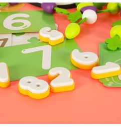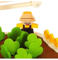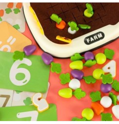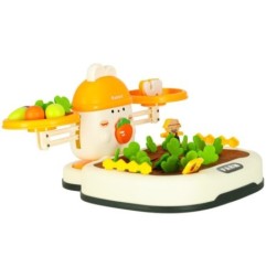 Specjalnie zaprojektowana plansza z otworami pozwala dziecku ćwiczyć precyzję ruchów - wkładanie i wyjmowanie marchewek rozwija sprawność manualną, a zabawa w "kto szybciej zbierze plony" wprowadza nutkę zdrowej rywalizacji.