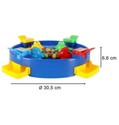 A na czym polega zabawa? Jej zasady łatwo zrozumieć - każdy z graczy wybiera jedną żabkę, następnie musicie wsypać kulki na środek planszy i wciskając listki spróbować złapać ich jak najwięcej! Gdy wszystkie kulki zostaną zebrane, podliczcie je - wygrywa osoba z ich największą ilością.