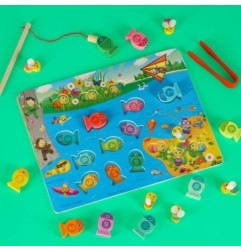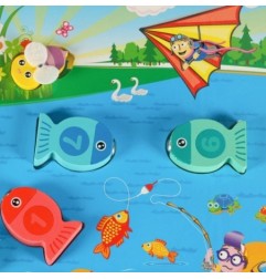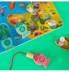 - Każda rybka została wyposażona w magnes, należy je złowić za pomocą wędki