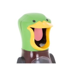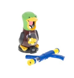 Kiedy pocisk uderzy w język kaczki, zabawka odtwarza charakterystyczny dźwięk.