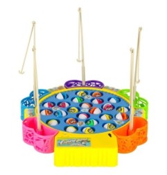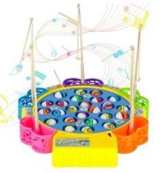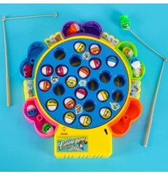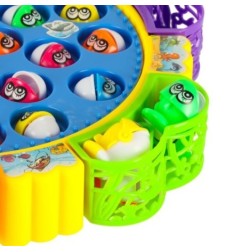 Koło z rybkami kręci się w rytm wesołej muzyki. Kolorowe pojemniczki na złowione rybki są wyjmowane.