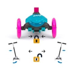 Wychodząc naprzeciw potrzebom naszych dorastających pociech stworzyliśmy hulajnogę trójkołową ZAPP. Dzięki aluminiowej wyjmowanej rączce jest wyjątkowo lekka, natomiast antypoślizgowe rękojeści z osłonami ochronią rączki małego podróżnika. Dodatkowym atutem poprawiającym bezpieczeństwo poprzez zwiększoną przyczepność, jest podest pokryty specjalną antypoślizgową powłoką oraz dwa pasy z wypustkami. Szyku i uroku całość dodaje modny wzór w przepięknych pastelowych kolorach.
