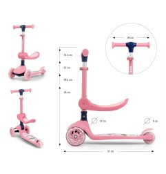 Scooter FUZZY to trójkołowa balansująca hulajnoga z siedziskiem dla najmłodszych. To popularny wybór wśród rodziców szukających bezpiecznego i atrakcyjnego środka transportu dla swoich dzieci. Idealnie łączy w sobie zabawę i funkcjonalność, wspiera rozwój fizyczny i koordynację ruchową