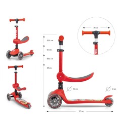 Scooter FUZZY to trójkołowa balansująca hulajnoga z siedziskiem dla najmłodszych. To popularny wybór wśród rodziców szukających bezpiecznego i atrakcyjnego środka transportu dla swoich dzieci. Idealnie łączy w sobie zabawę i funkcjonalność, wspiera rozwój fizyczny i koordynację ruchową