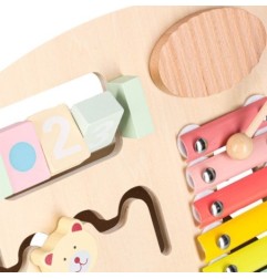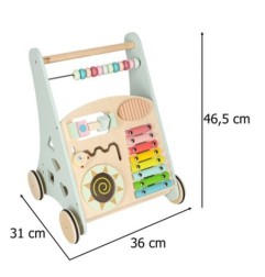 Drewniany pchacz z klockami to zabawka interaktywna i wspomagająca naukę, która rozwija kreatywność i rozwój dziecka. Cymbałki pozwalają dziecku odkrywać rytmy, sorterek kształtów uczy dopasowywania, a kolorowe klocki wspierają rozwój zręczności i logiczne myślenie. Każdy element zaprojektowano tak, by wspomóc rozwój sensoryczny Twojego dziecka i zachęcać do poznawania świata poprzez ruch.