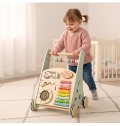 Pchacz z klockami to towarzysz pierwszych kroków, który łączy naukę, muzykę i ruch. To zabawka idealna na prezent - piękna, praktyczna i rozwijająca. Ta zabawka wielofunkcyjna jednocześnie bawi i wspiera rozwój dziecka każdego dnia. Drewniany chodzik z liczydłem to zabawka wielofunkcyjna, która wspiera rozwój, naukę chodzenia i rozwój sensoryczny każdego malucha.