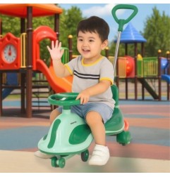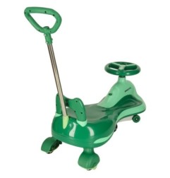 Jeździk grawitacyjny dla dzieci od 3 do 6 lat, wykonany z trwałego tworzywa, o maksymalnym udźwigu do 100 kg. Wyposażony w mocne koła z efektem świetlnym LED (zasilanie 3×AA, baterie nie dołączone). Dostępny w zielonym kolorze.