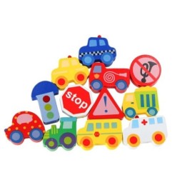 DREWNIANE KLOCKI DLA DZIECI POJAZDY -