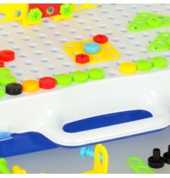 Tabliczka do wkręcania śrubek, pełni również funkcję walizki, która ułatwi przechowywanie i przenoszenie klocków.