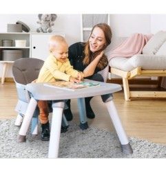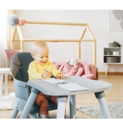 Krzesełko do karmienia Master 6 w 1 to połączenie praktyczności z nowoczesnym wzornictwem.Dzięki konstrukcji można je szybko dostosować do potrzeb dziecka. Wysokie krzesełko z regulowaną tacką do karmienia można w jednej chwili przerobić na zestaw: małe krzesełko + praktyczny stolik.Dodatkowa nakładka na stolik, kompatybilna z popularnymi klockami, umożliwi dziecku wygodną zabawę. Wielofunkcyjność – wysokie krzesełko, które łatwo zamienić w zestaw krzesełko i stolik Regulowana tacka ze zdejmowanym blatem Siedzisko ze zdejmowalną tapicerką z ekoskóry 5-punktowe szelki oraz trzpień umieszczony pod tacką chroniące przed wypadnięciem Możliwość montażu siedziska na zwykłym krześle Możliwość zrobienia z krzesełka praktycznego stołeczka Dodatkowa nakładka na stolik kompatybilna z popularnymi klockami Solidne nogi zakończone antypoślizgowymi nakładkami Wymiary (szerokość / wysokość / głębokość cm): Rozłożony: 57/97/45 Siedzisko: 29/34/25 Waga: 7.8 kg