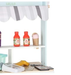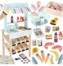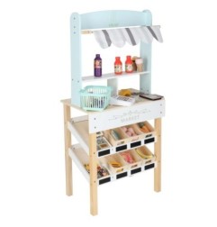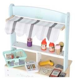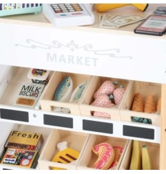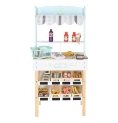 Drewniany market stragan z kasą dla dzieci