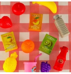 owocami (truskawka, jabłko, pomarańcza, winogrono) i kartoniki