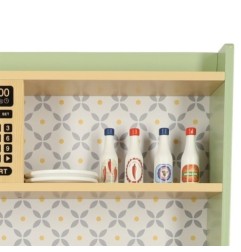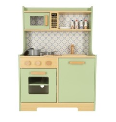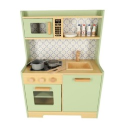 Drewniana kuchnia dla dzieci w miętowym kolorze to własne miejsce