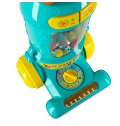 Urządzenie ma dwa interaktywne przyciski, które sprawiają, że zwykłe odkurzanie nabiera magii. Przycisk z kółkiem wprawia umieszczone kulki w ruch za pomocą podmuchu powietrza. Z kolei przycisk z nutkami uruchamia wesołe piosenki. Z takim zabawkowym odkurzaczem sprzątanie sprawi przyjemność najmłodszym.