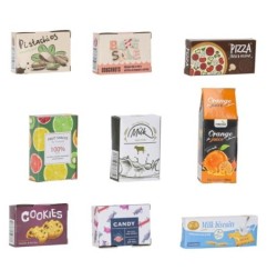Wśród 47 elementów znajdziesz plastikowe owoce, warzywa, jajka oraz kartonowe pudełeczka imitujące opakowania ciastek, soku, cukierków czy pizzy.