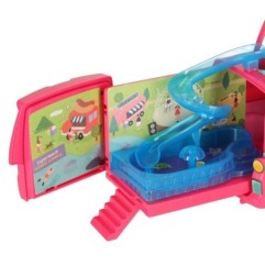Rozkładany kamper zachęca do tworzenia historii pełnych przygód. Wysuwany telewizor, schodki, kempingowy namiot, basen i zjeżdżalnia pozwalają dzieciom budować własne scenki i odkrywać świat po swojemu. To zestaw, który rozwija wyobraźnię i naturalnie inspiruje do kreatywnej zabawy.
