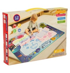 Ta wyjątkowa mata do malowania wodą nie potrzebuje farb ani tuszu - tylko czystej wody, aby na jej powierzchni powstawały kosmiczne dzieła sztuki. Wyposażona w niebrudzące pisaki wodne, flamastry wodne i mazaki napełniane wodą, umożliwia malowanie na ziemi, stole czy tarasie bez ryzyka zabrudzeń. To szybkoschnąca mata wielokrotnego użytku, która po wyschnięciu w około kwadrans jest gotowa do kolejnej kreatywnej sesji.