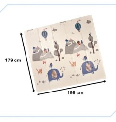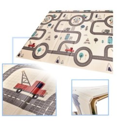 Piankowa mata edukacyjna doskonale sprawdzi się do wyznaczenia miejsca do zabawy, ale także jako dywan w pokoju dziecka. Jest dwustronna – z jednej strony jest pagórki oraz zwierzęta, a z drugiej kręte uliczki idealne do zabawy ulubionymi samochodzikami. Grubość maty wynosząca 1 centymetr zapewnia nie tylko wygodne miejsce do zabawy, ale także ochroni przed zimną podłogą i sprawia, że nauka chodzenia jest bezpieczniejsza. Mata jest wyjątkowo praktyczna – łatwo ją składać i rozkładać, dzięki czemu zajmuje minimalną przestrzeń, kiedy nie jest używana.