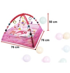 Mata z zabawkami zawieszonymi na pałąkach- kolorowe zabawki zawieszone na pałąku będą przyciągały uwagę maluszka i motywowały do ćwiczenia i wzmacniania mięśni karku, rąk i nóg. Dodatkowo świetnie sprawdzi się podczas pierwszych prób samodzielnego siadania.