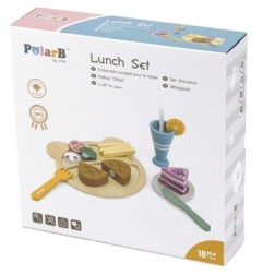 - Zestaw zawiera: nożyk, widelec, talerzyki, stek, warzywa, picie ze słomką, ciasto, frytki - Całość wykonana została z drewna lakierowanego, - Zabawka pomalowana bezpiecznymi dla dziecka farbami Zabawka rozwija: