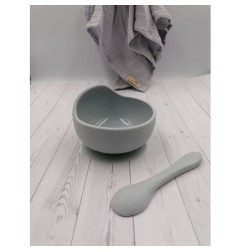 BABY 01138 Miska silikonowa z przyssawką i łyżeczką Grey