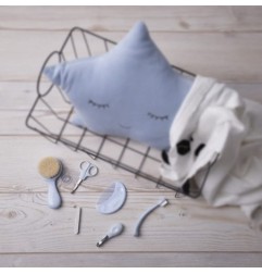 Szczotka do włosów wykonana z naturalnego miękkiego koziego włosia. przeznaczona dla noworodków i niemowlaków. Zapobiega występowaniu ciemieniuchy i elektryzowaniu włosów. Grzebyk idealny do czesania pierwszych włosków. Wygodne do chwytania i precyzyjnej kontroli przy pielęgnacji paznokci. Nożyczki z zaokrąglonymi krawędziami specjalne dostosowane do użytku dla najmłodszych dzieci. Bezpieczny i łatwy w użyciu obcinacz, stanowi niezbędne uzupełnienie pielęgnacji. Cztery dwustronne pilniczki, konieczne do wyrównania brzegów paznokci. Pierwsza szczoteczka do zębów z ergonomicznym uchwytem i miękkim włosiem czyści ząbki, masując dziąsła zapewniając prawidłowy rozwój.