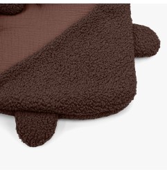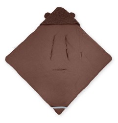 Funkcjonalny kapturek z uroczymi uszkami misia jest zintegrowany z otulaczem, skutecznie chroniąc główkę przed chłodem.