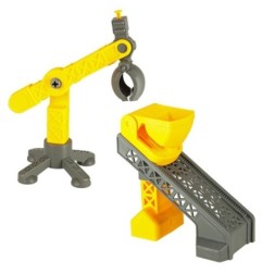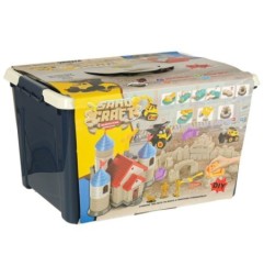 Do zestawu dołączono wiele różnorodnych elementów, które sprawiają, że zabawa nigdy się nie nudzi. Są tu foremki do robienia babek, które pozwalają tworzyć niepowtarzalne kształty, maszynka do cegiełek, sorter i narzędzia. W komplecie znajdziesz także figurki, pojazdy budowlane, żurawia i taśmę transportową - dzięki nim budowa zamku staje się jeszcze bardziej realistyczna.