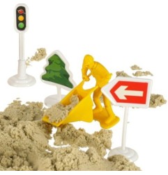 Zastosowany w zestawie magiczny piasek to nowoczesna wersja zabawki znanej od pokoleń. Jego niezwykłe kinetyczne właściwości sprawiają, że konsystencja piasku przypomina mokry piasek plażowy, ale nie rozsypuje się i nie brudzi otoczenia. To idealny piasek sensoryczny, który rozwija zmysły, motorykę oraz pomaga wyciszyć emocje.