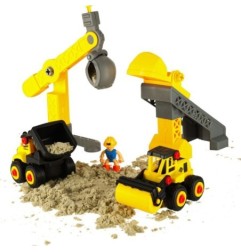 pojazdy i foremki do robienia babek sprawiają, że zestaw staje się prawdziwą