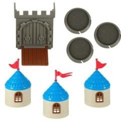 zamku (fundamenty, wieże, dachy, okna, drzwi, flagi)