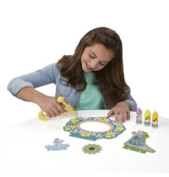 Hasbro Doh Vinci Ciastolina Kraina Lodu - Toaletka do Ozdabiania Doh Vinci jest jest serią ciastoliny dzięki której możesz kreatywnie spędzić czas dekorując i projektując swoje ulubione akcesoria, dodać im oryginalnego wizerunku. oaletka do ozdabiania z serii Frozen będzie wspaniałym elementem dekoracyjnym pokoju. A więc, do dzieła....Udekoruj swój pokój za pomocą ramki i bajecznie funkcjonalnej toaletki. Aby zacząć, wystarczy załadować tubkę Deco Pop, a następnie wycisnąć. Projektuj i pozwól błyszczeć swojej wyobraźni! Zestaw wyposażony jest w świecące tubki Deco POP do stworzenia fantastycznych efektów prosto z filmu. Zachwyć wszystkich swoimi umiejętnościami dekoracyjnymi. Po zaprojektowaniu dodaj ulubione zdjęcie, umieść je razem i przechowuj, jako świetną pamiątkę! W zestawie: stylizator 4 tubki akcesoria toaletka