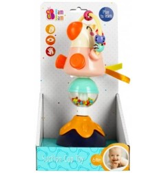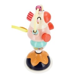 KONIK na PRZYSSAWKĘ Bam Bam to zabawka edukacyjna przeznaczona dla maluchów od 6 m-ca. Postać uroczego konika osadzona jest na obracającej się, dwukolorowej platformie. W wyniku obrotu platforma wydaje delikatne, turkocząco- grzechoczące dźwięki, w tym dzięki kolorowym kuleczkom umieszonym w kuli, na której stoi konik. Nad zabawną postacią zwierzątka umieszczona jest obręcz z kolorowymi kuleczkami, których obracanie i przeciąganie z jednego końca na drugi doskonale ćwiczy zdolności manualne dziecka. Subtelna i zróżnicowana kolorystyka absorbuje uwagę dziecka aktywizując jego zmysły wzroku, dotyku, słuchu. Przyssawka osadzona pod zabawką zapewnia stabilne mocowanie do blatu stolika, tacki wózka czy krzeska do karmienia. Wymiary/waga/baterie: wymiary produktu (szer. x wys.)[cm]: 7x21, wymiary opakowania (dł. x wys. x gł.)[cm]: 14x26x12, waga produktu bez opakowania [kg]: 0,16 kg, waga produktu w opakowaniu [kg]: 0,23 kg, nie wymaga zasilania bateriami. Zabawka przeznaczona dla dzieci w wieku: 6m+. Pakowana w otwarty kartonik.