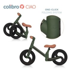 Rowerek biegowy CIAO marki COLIBRO z funkcją składania. Rowerek biegowy jest najlepszym rozwiązaniem do nauki jazdy na rowerze tradycyjnym. Dzięki niemu Twoje dziecko szybko i bezpiecznie opanuje utrzymywanie równowagi, a od tego już zaledwie krok do przesiadki na tradycyjny rowerek napędzany pedałami. Możliwość odpychania się nóżkami daje dziecku poczucie bezpieczeństwa, przez co nabiera ono śmiałości do rozwinięcia prędkości umożliwiającej bezpieczne balansowanie. Rowerki biegowe często stają się nieodłącznymi towarzyszami podczas codziennych spacerów.
