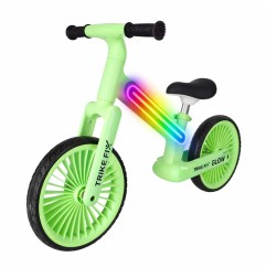 Rower biegowy Trike Fix Glow zielony z wbudowaną podświetlaną ramą LED (20 trybów świecenia). Lekka, wytrzymała konstrukcja. Koła z materiału EVA, regulowane siodełko 40-45 cm, maksymalne obciążenie 30 kg. Waga 3,6 kg. Dla dzieci od 2 lat.