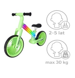 NOWOCZESNY ROWER BIEGOWY DLA DZIECKA LED TRIKE FIX GLOW ZIELONY NEON