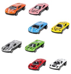osiem pojazdów w zestawie – 8 różnorodnych samochodów, które mogą ścigać się na torze lub być transportowane lawetą zapewniają różnorodne możliwości zabawy